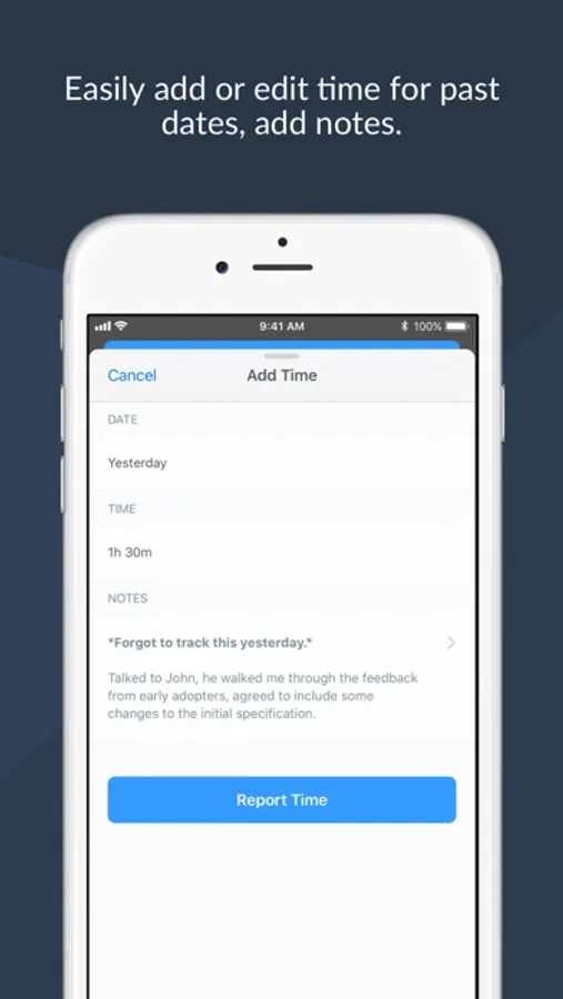 This early version serves as a help to teams that already use our service, but extremely need to track time when away from their desk. For example, if you meet with clients or work offsite.