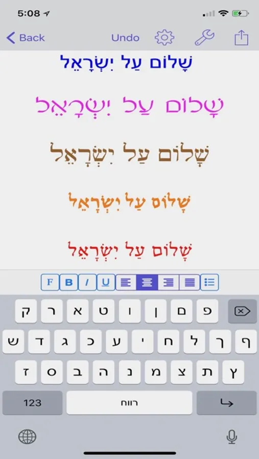 Write in Hebrew and English on your iPhone or iPad with Hebrew Writer. Use different fonts, formatting, and styles. You can type Hebrew with nikud - Hebrew vowels - using the convenient nikud bar. The app lists the Hebrew fonts in a special font list, and you can even automatically insert the correct Hebrew or English date into your document.