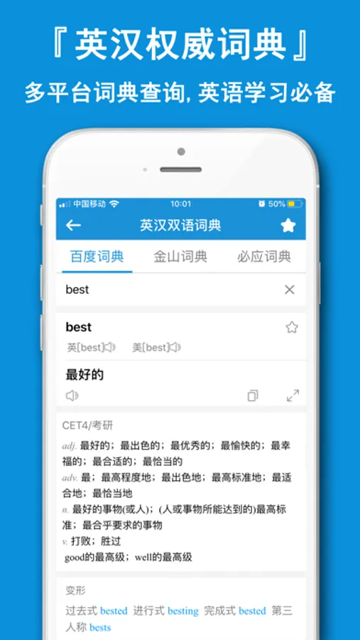 [English Chinese authoritative dictionary] it supports dictionary query on Baidu, Jinshan and Bing, and is an essential assistant for English learning.