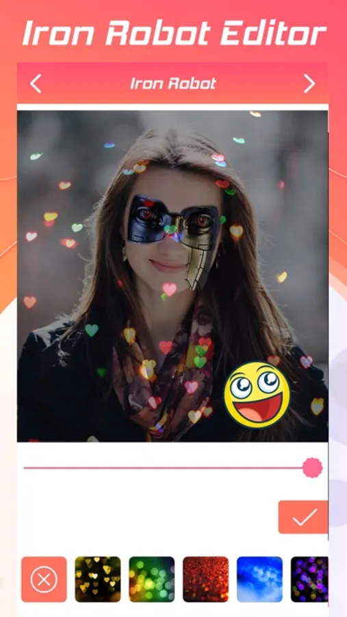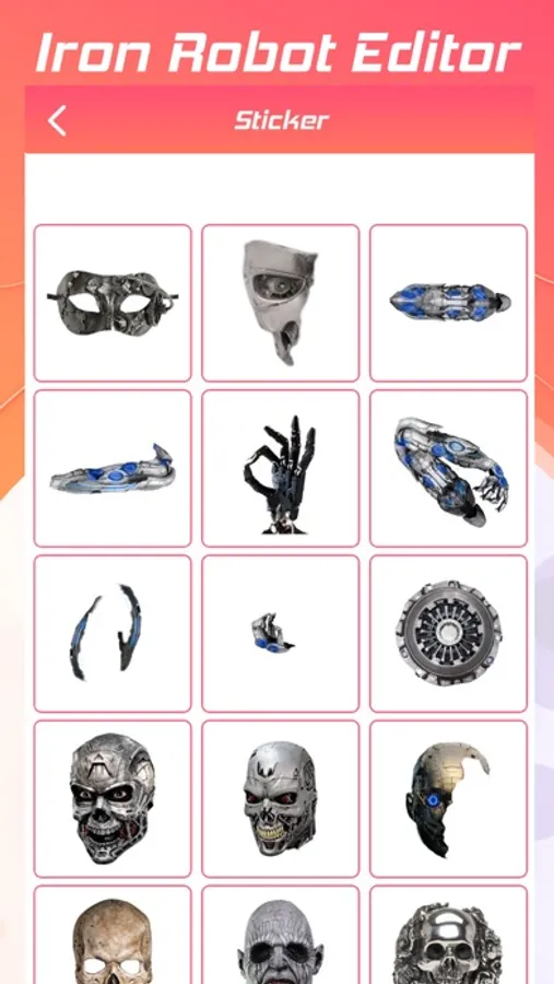 This Iron Robot Photo Editor has Masks,suits,Weapon Sticker and lot of options and features for decorate your photos.