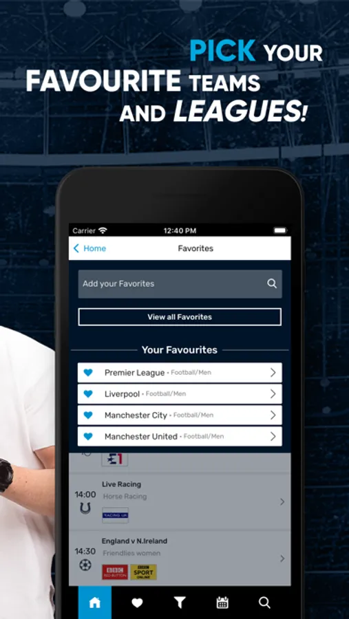 - Customise by adding your favourite teams and leagues.