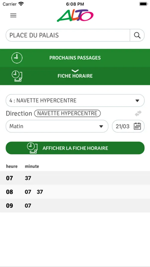 - Consultez les prochains passages de bus ou la fiche horaire à vos arrêts