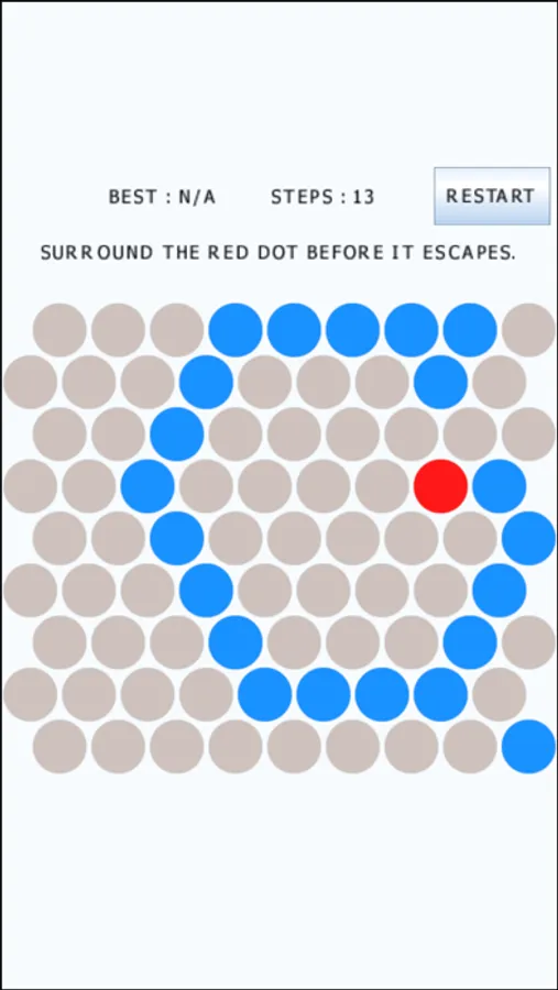 This is simple game with very simple rules, Just trap the the red dot within the matrix of circles.