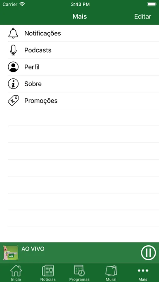 - Ouvir a programação da Rádio ao vivo
