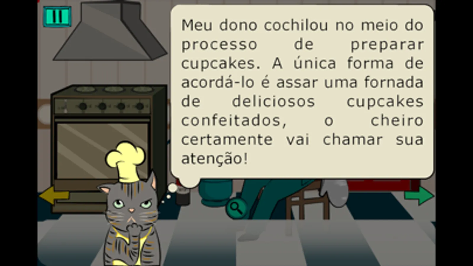 O intuito do jogo é ajudar a personagem principal a reencontrar seus filhotes. A gatinha precisa acordar seu dono com o cheiro de Cupcakes, para que ele abra a porta da cozinha. Será que você consegue ajuda-la a encontrar todos os ingredientes dos bolinhos e também a preparar os Cupcakes?