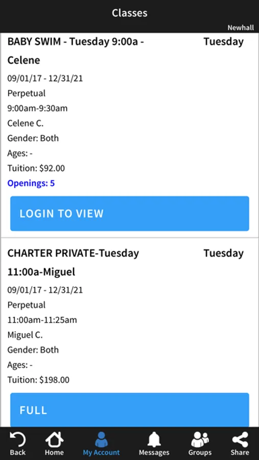 - Have a class in mind? Search by lesson type, level, day and time. You can register into a class you find instantly!