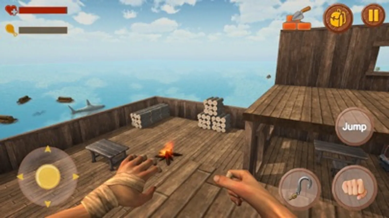 Pick up boxes and boards that float around you, they contain resources for survival from which various tools are made.