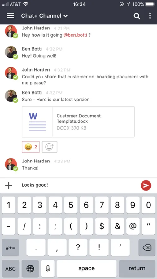 A complete team collaboration solution including chat, file sharing, group messaging and more.
