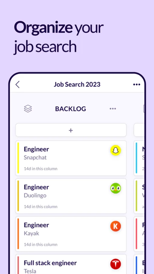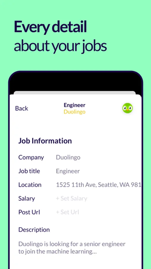 Browse the top job search sites in one app and save jobs with one tap. Save and track all your jobs in your Huntr board. Move jobs across stages and know where you stand with each opportunity. Keep track of important dates like interviews, deadlines and time-sensitive tasks. Add job search related tasks and notes. Visualize your jobs in a map.