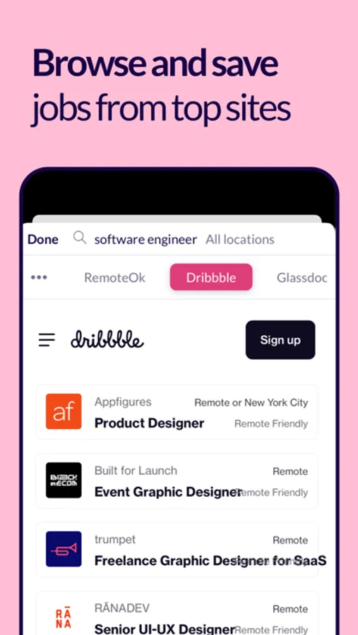 Huntr allows you to select your favourite job search sites, and browse all of them in one app with one search. Find a job post you like and save it to your Huntr board with a single tap.