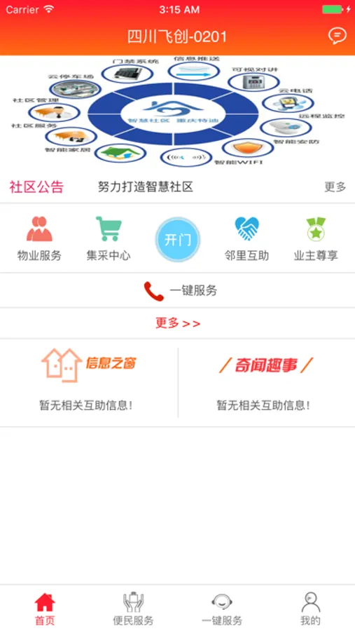 飞创E家是一款面向广大业主开发的物业移动智能服务平台,平台上实现的主要功能包括:小区智能服务(门禁、车闸等)、在线缴费(物业费、停车费、生活缴费),在线物业服务、积分系统、圈子、电商、O2O服务等。通过飞创E家APP,物业管理将顺应物业服务的互联网化趋势,借助平台的线上整合能力,优化小区物业服务品质,使小区管理向数字化、智能化迈进的同时,打造以业主为核心的社区 O2O 消费生态圈。