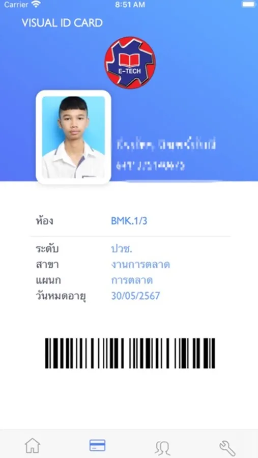 • ระบบ Visual ID Card บัตรแสดงข้อมูลเบื้องต้นนักศึกษา