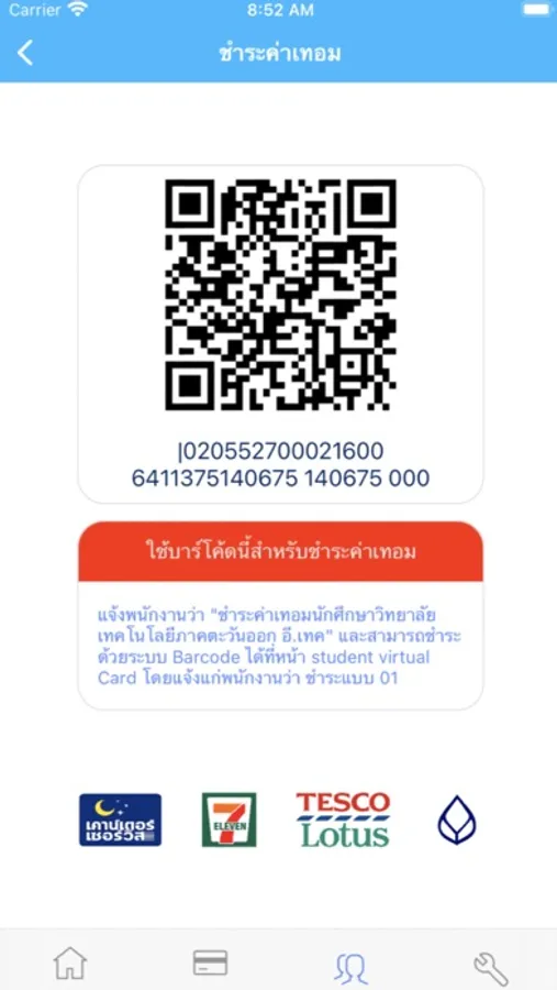 • ระบบการชำระค่าธรรมเนียมการศึกษาด้วย Bar code