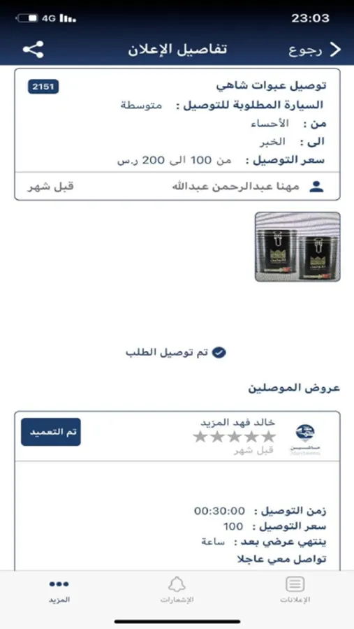 يرتكز على الشراكة المجتمعية في نقل وتوصيل الاحتياجات الشخصية للأفراد والمتاجر مع الموصلين المعتمدين ..