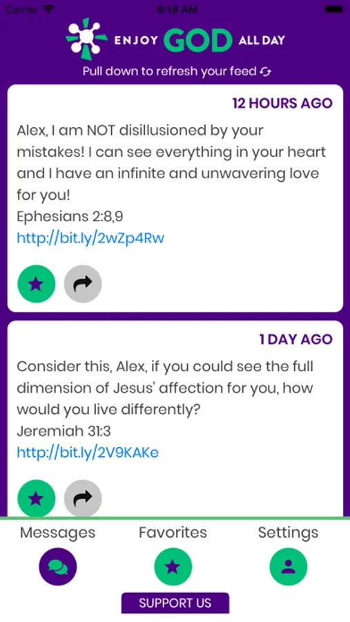 A primary feature of the app is the delivery of short messages designed to encourage life-changing growth in knowing God more deeply and encountering Him more often throughout the active hours of your day.