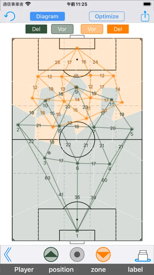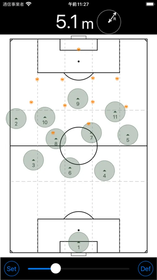 e.g.2) If define as pass range is 20m. You can find receivable position and connectable position between 2 players.