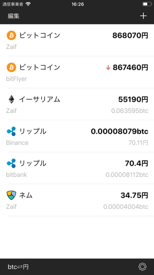 仮想通貨価格比較チェックアプリです。
