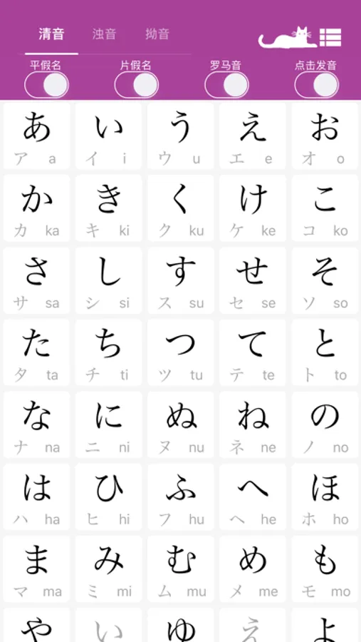 五十音表,无广告