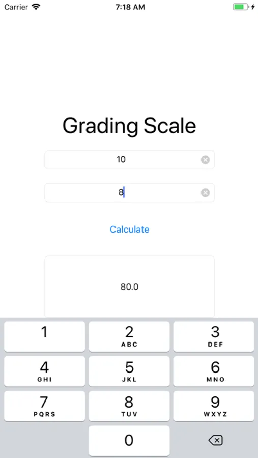 Simplify your grading process, enter the total number of questions for the assignment, and the number of questions correct and press calculate.