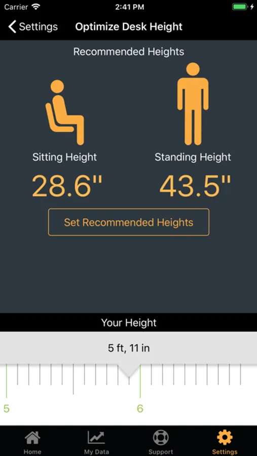 - Recommended desk positioning based on your height