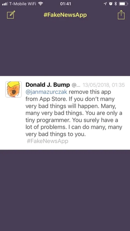 #FakeNewsApp let's you create tweet screenshot with any contents you want, written by any made up (OR NOT) person.