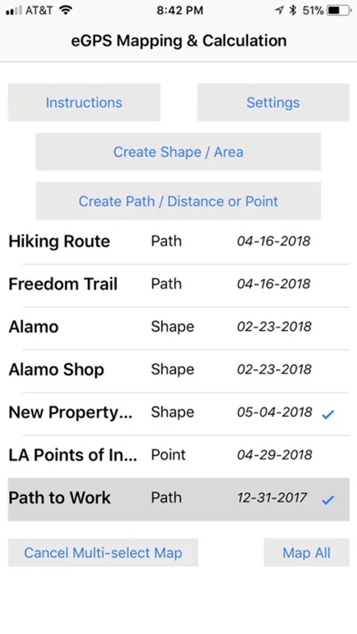 This app allows you to walk, drive, bike, etc… any shape or any path. You can take / save pictures of your overall area / path, or at each point along the area / path. They are saved with your shape. Once you save your area or path, you can view it on a map (either satellite or street view) individually. You can also place multiple saved areas / paths together on one map for viewing. You have the ability to email the information (.csv file of coordinates for use in Excel or other program plus all your pictures on one easy place). You can also export or sms text message your information.