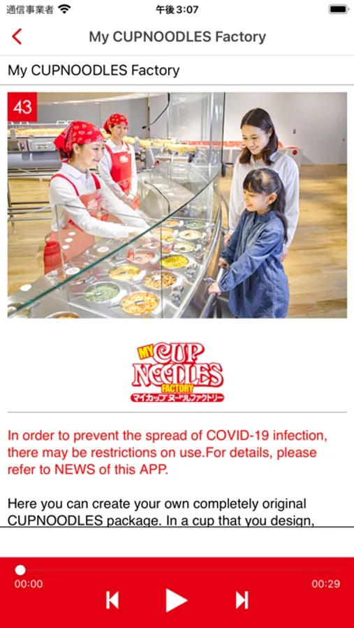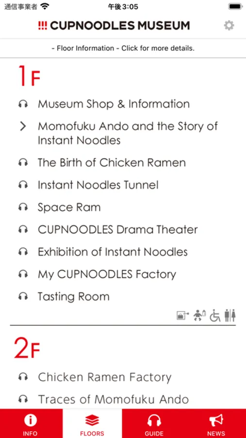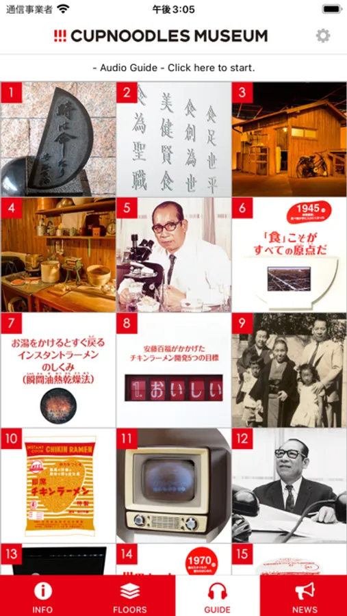 The "CUPNOODLES MUSEUM OSAKA IKEDA Audio Guide App" is an app that makes it possible to enjoy self-guided tours in audio and text form.