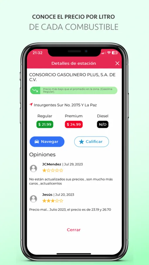 Regístrate, inicia sesión y califica a las gasolineras que visitas comúnmente, también puedes escribir una reseña para ayudar a otros usuarios a tomar la mejor decisión y así ahorrar en cada carga de combustible.