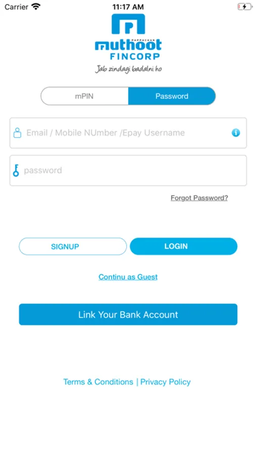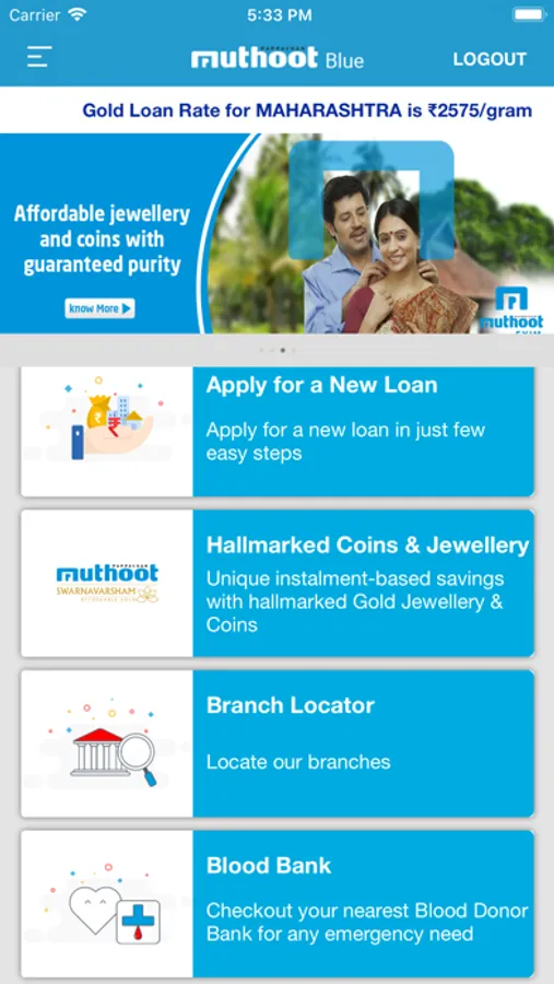 Welcome to Muthoot Blue app, your one stop solution to avail services provided by Muthoot Fincorp Limited, India’s leading non-banking financial company. The app comes with a clean and simple user interface, designed to deliver an excellent user experience and service. For existing customers of Muthoot Fincorp Limited, this app eases most of your servicing needs such as loan account details, loan statements, interest and principal remittances etc.