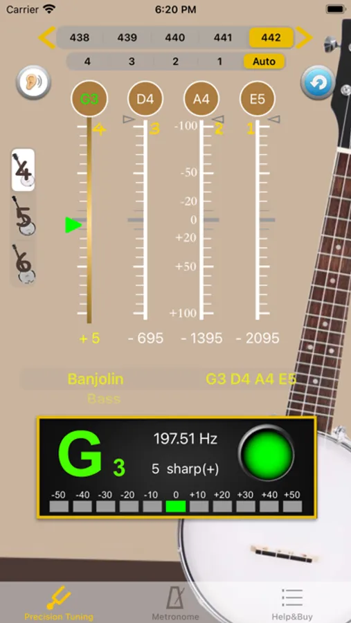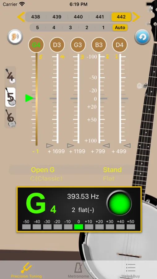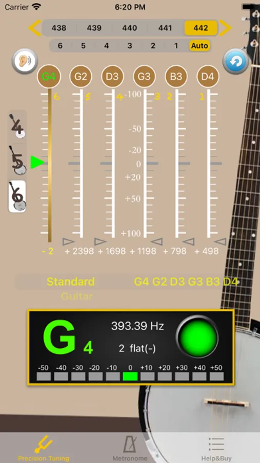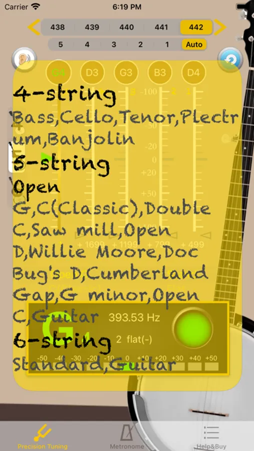 - A4 Frequency adjustment: choose 428~452 frequencies for A4 string.