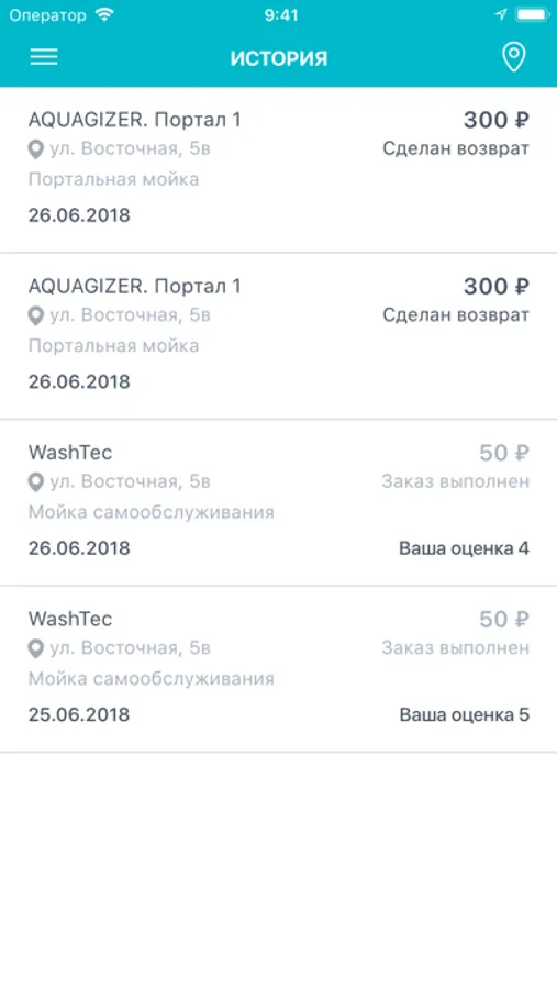 - Видеть историю своих посещений автомоек.