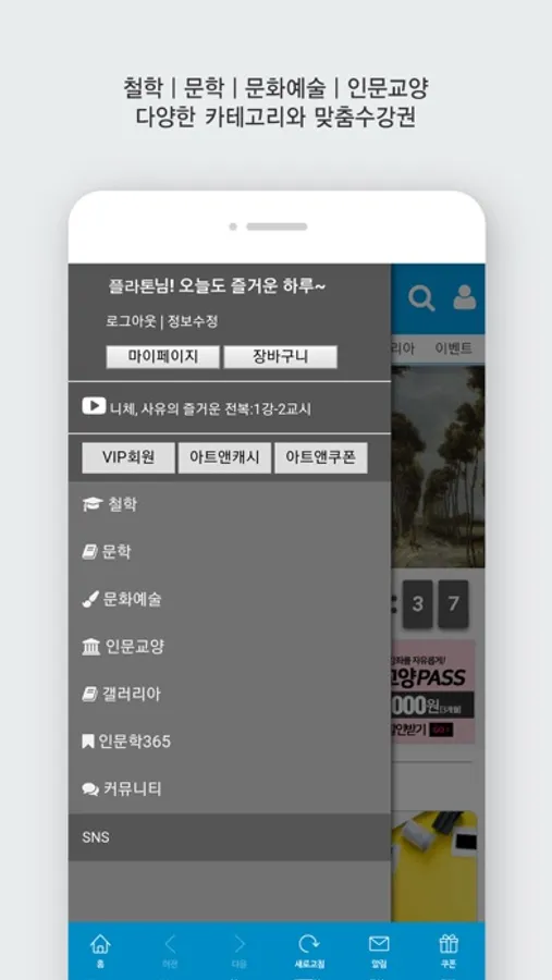 앞으로도 편리하게 모바일에서 인문학 학습을 하실 수 있도록 서비스 품질 및 고객 만족도 향상을 위해 최선을 다하겠습니다.