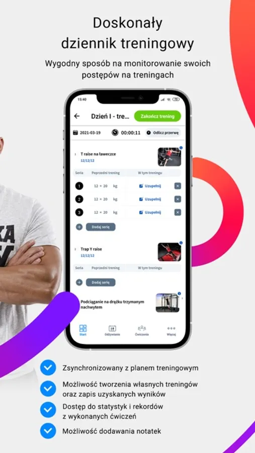 - dziennik treningowy - na bieżąco zapiszesz wyniki swoich treningów, zrobisz notatki i będziesz monitorować swoje postępy
