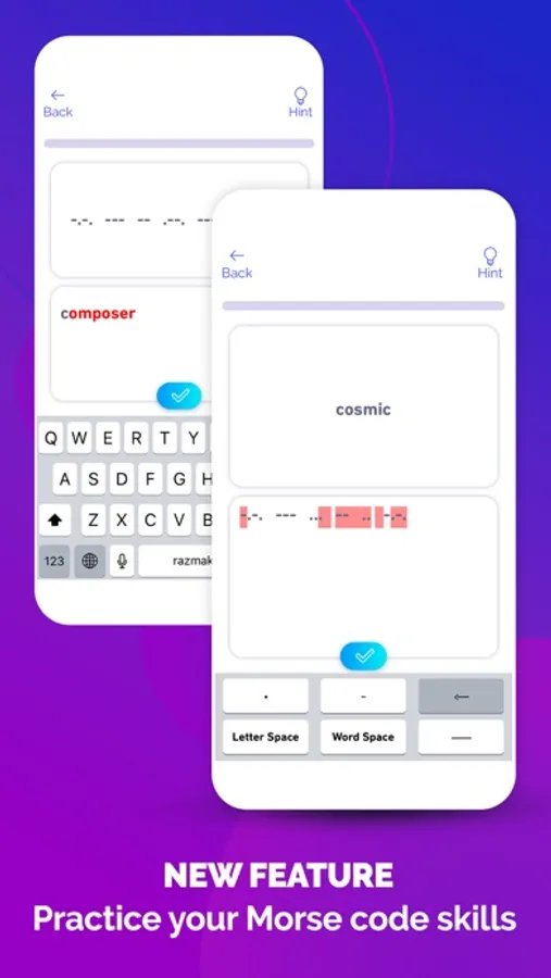 Do you need a perfect tool for converting text into Morse Code and vice versa? And do you want that tool to transmit Morse Code in four different ways? Then, this is the right app for you! This app will convert any text into Morse Code which you can transmit via flashlight, screen blinking, vibration and sound effects. If you need to convert Morse Code into regular text, that is also possible. Give this app a try immediately and enjoy its fabulous design and great functionality.