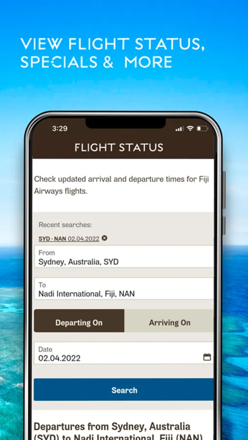 Booking flights with Fiji Airways just got easier. Browse our best fares, view your recent flight searches and book flights with peace of mind.