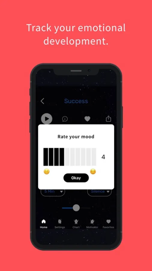 During each session, Voy measures your current mood using a scale from 1 to 10. Afterwards, you can evaluate your progress and clearly see which meditation helps you best.