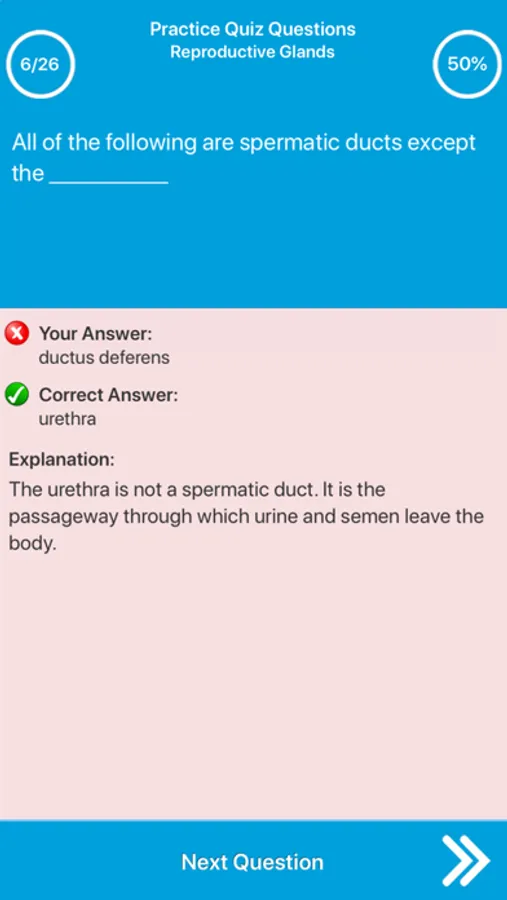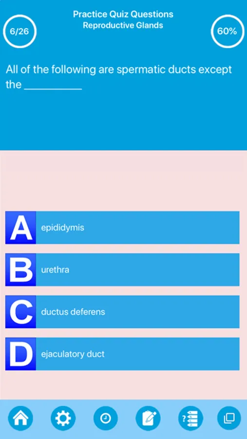 You can learn new knowledge or improve your information about male reproduction with practice exams,view answer explanations, using an intuaitive and cool quiz interface.