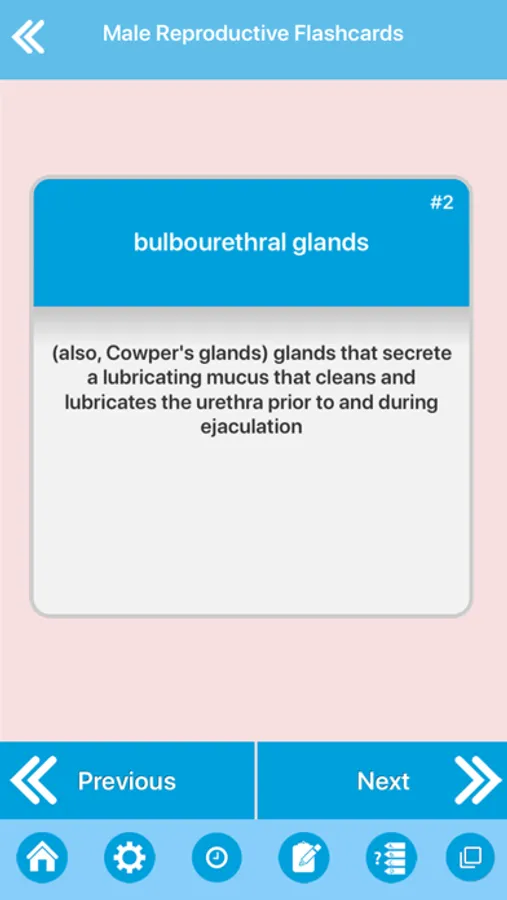 Study and learn abou male reproductive system anatomical terminology using simple and effective flashcards screen.