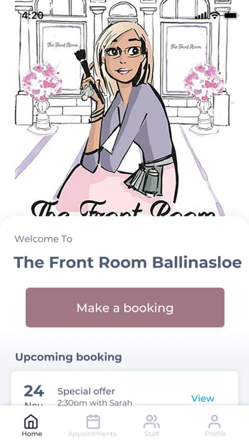 The The Front Room Ballinasloe app makes booking your appointments and managing your loyalty points even easier. You're just a few taps away from feeling good and looking great!