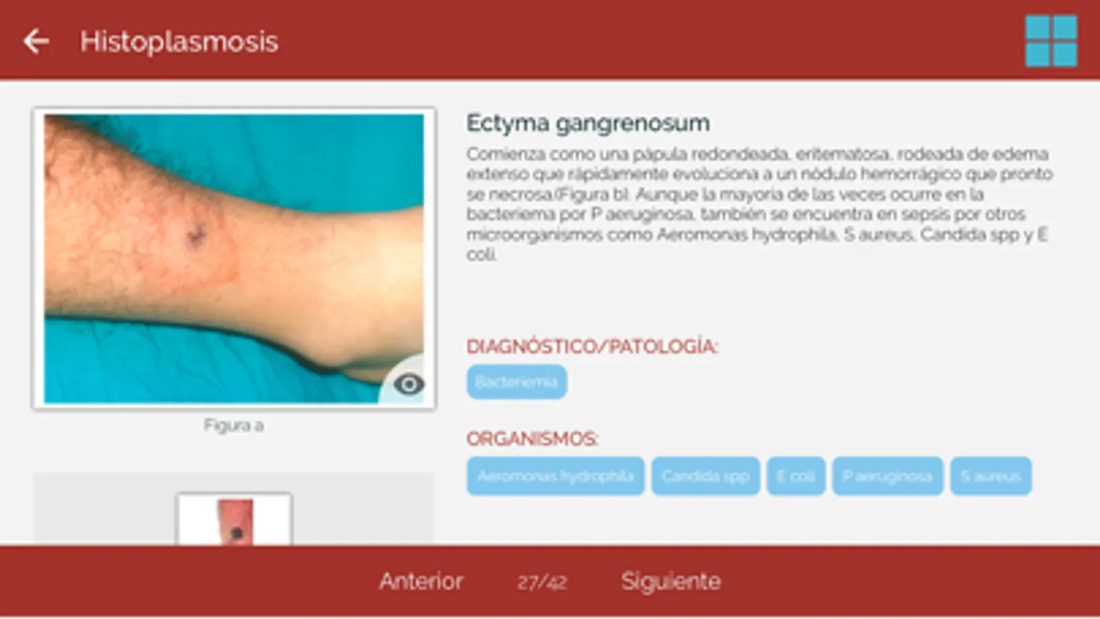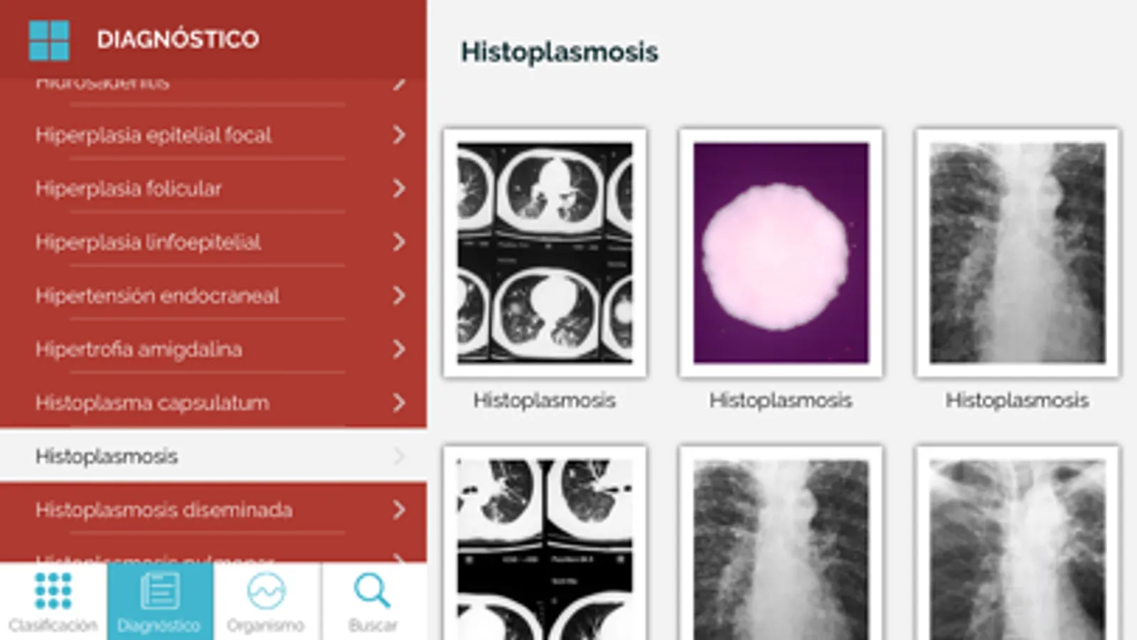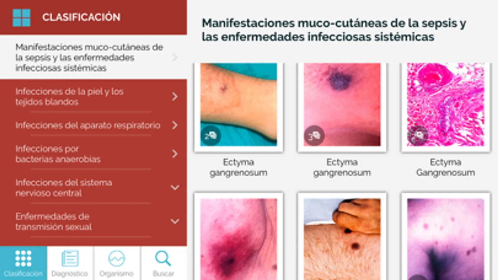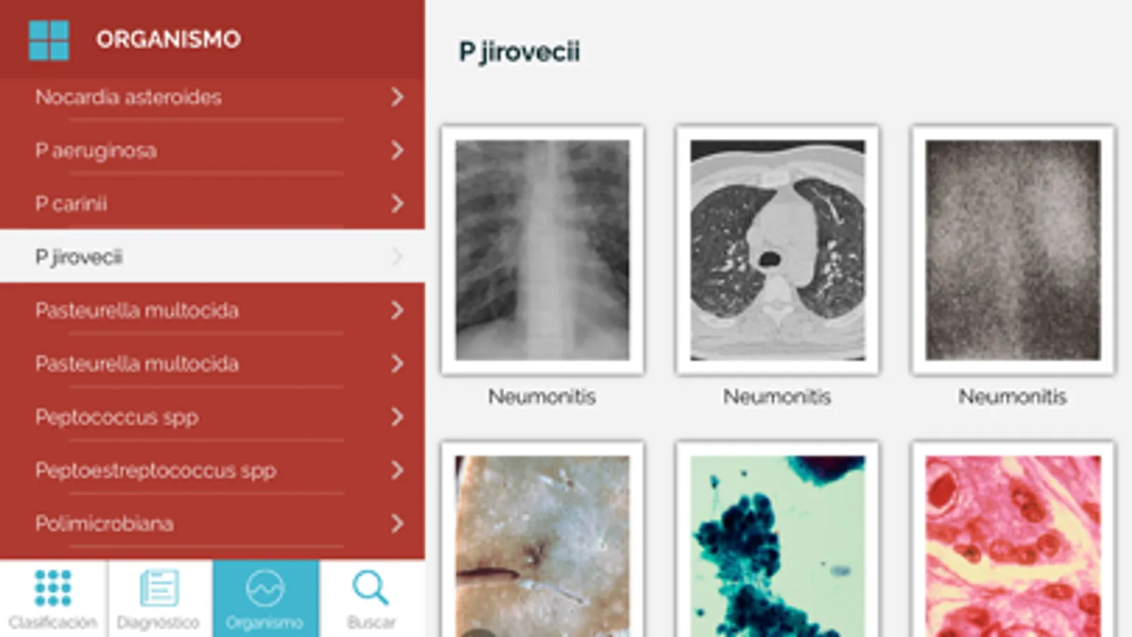 Las imágenes se encuentra clasificadas por patología, diagnóstico, organismo y área terapéutica, con descripción individualizada y contenido relacionado que amplía la información y la enmarca en su contexto.
