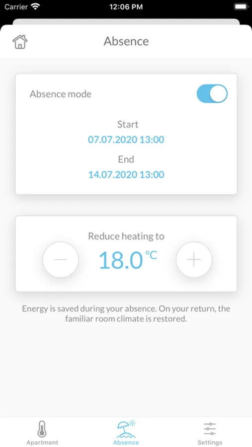 Log your absences and save energy. On your return, the familiar room climate is restored.