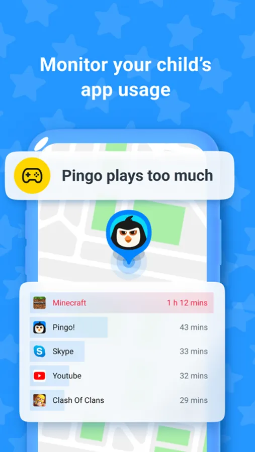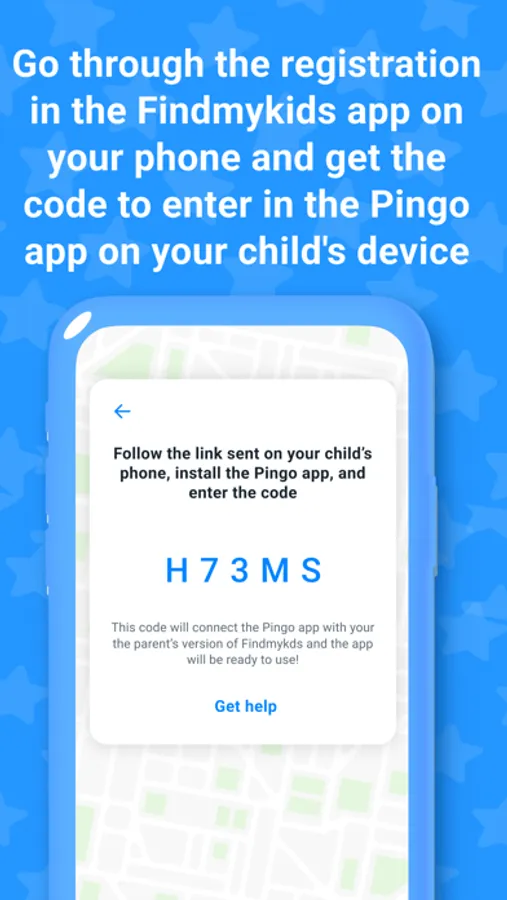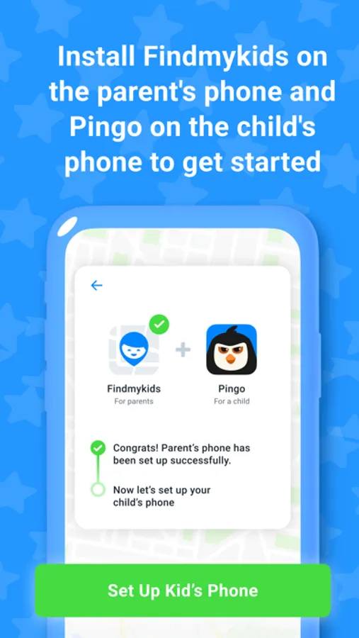 We recommend you start by downloading the Findmykids app on your phone. After that, install Pingo on your child's device and enter the code from the Findmykids app you received when you signed up.