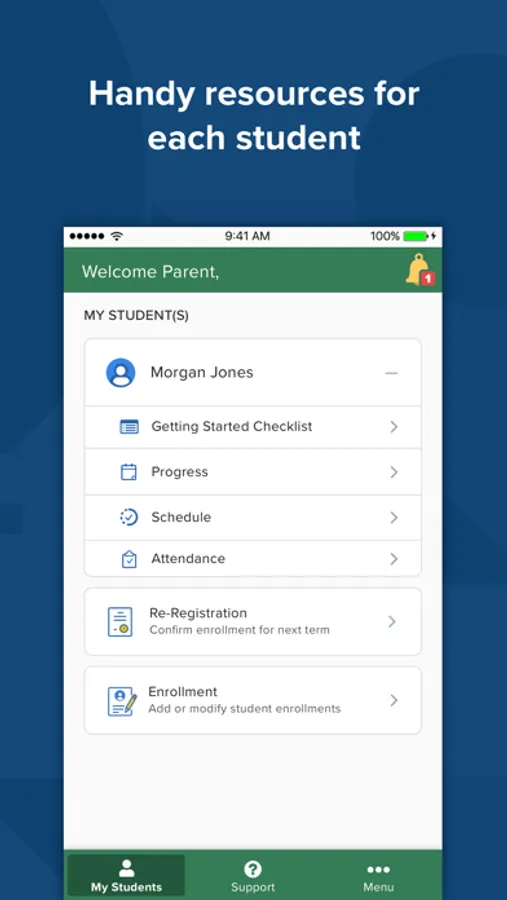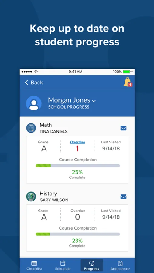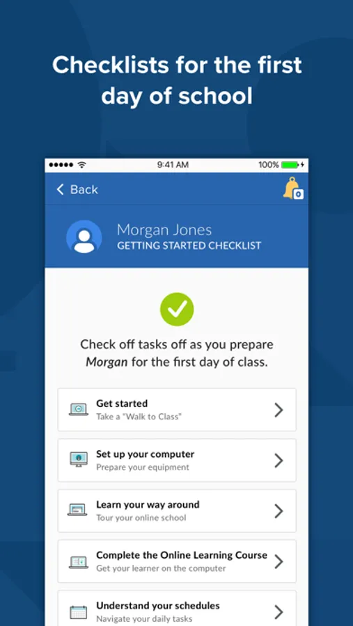 Stay up to date about your student’s online school experience with the schedule viewing feature.*