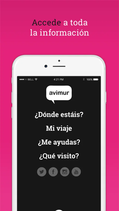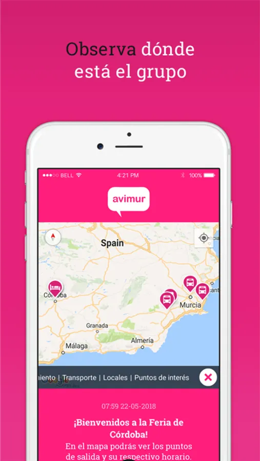 Avimur es la APP exclusiva para nuestros clientes y viajeros. Esta app te permitirá conocer en cualquier dispositivo móvil el detalle y la información de tu viaje, además podrás conocer en tiempo real dónde está el grupo y los responsables del viaje, así como toda la programación del viaje para que no se te escape nada ¡descárgala y empieza a disfrutar de tu viaje!
