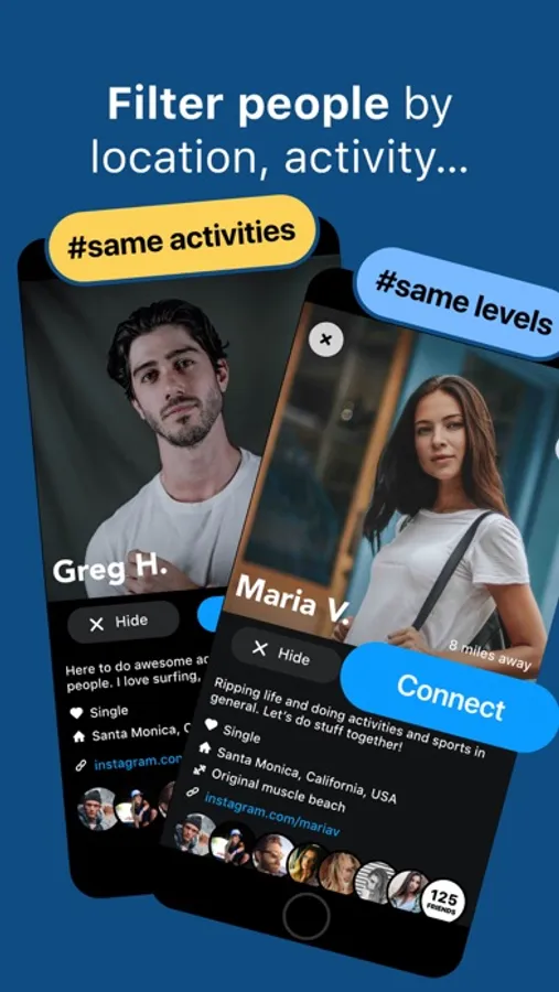 Choose between 200 activities, From workouts to surfing to going for brunch.