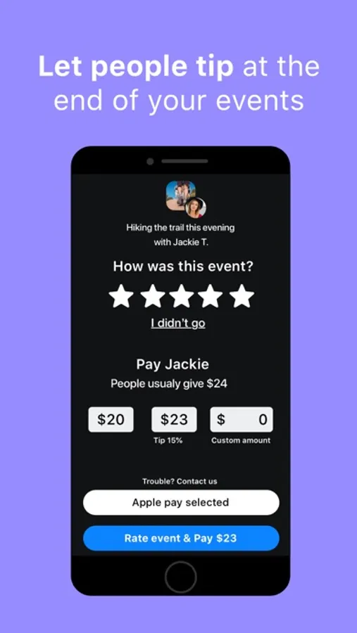 • Or allow participants to tip at the end of an event, depending on your suggested price.