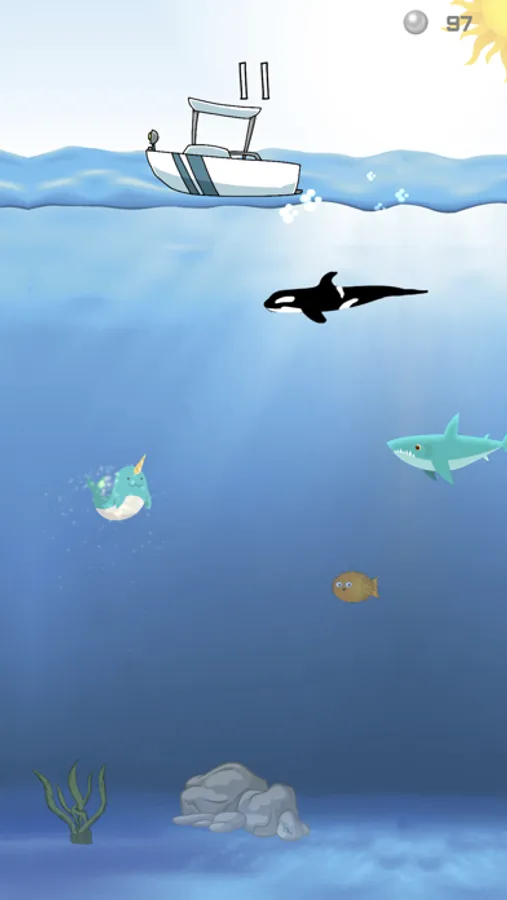 Alternatively takeout sharks with your horn as you collect pearls, upgrading your narwhal.