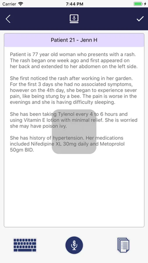 Use VoiceboxMD's mobile app to take notes on the go. Whether you are making rounds at the hospital or relaxing in the sun. With VoiceboxMD Mobile all your notes are conveniently available on the desktop for an easy transition into EHR.
