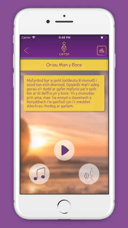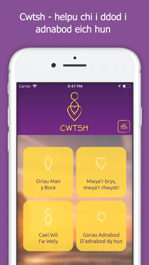 Mae Cwtsh yn hafan i Gymry droi tuag ato er mwyn cychwyn ar y daith o gysylltu’n ddyfnach gyda nhw eu hunain drwy dechnegau myfyrdod sy’n adlewyrchu cynhesrwydd a natur groesawgar y Cymry ac i chi deimlo fel eich bod yn rhoi cwtsh i’ch hun wrth ei ddefnyddio.