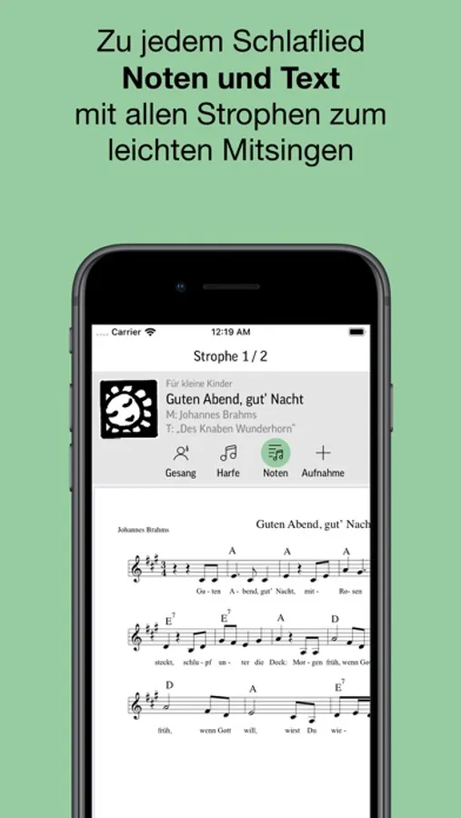 Heute gerät dieses sinnvolle und nachweislich Körper, Geist und Seele bereichernde Kulturgut immer mehr in Vergessenheit. Darum habe ich hier die für mich schönsten deutschen Schlaflieder ganz unprofessionell und für jeden nachsingbar – für kleine wie auch für größere Kinder – eingesungen und Text und Begleitung beigelegt, damit jeder diese Lieder wieder lernen und zur Harfen- oder eigenen Begleitung selbst singen kann. Texte und Noten mit Begleitsymbolen liegen bei.